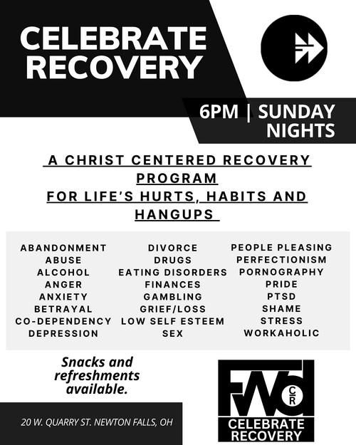 Celebrate Recovery is a safe, welcoming, and confidential community where people come together to find freedom and healing through Jesus Christ. Whether you’re dealing with past trauma, substance abuse, codependency, anger, grief, or any life-controlling issue, you are not alone. This is a place where it’s okay to not be okay—but you don’t have to stay there.